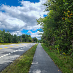 Browns Tract Road (yes, not "Brown" or "Brown's") rolled on for several miles, passing numerous seasonal camps on the north side of the road. Most of these seemed a bit neglected—tarps, rotting plywood, and campers slowly being consumed by rust and moss. Others looked like they saw at least occasional visits and most had a camp name emblazoned somewhere on the property. The dirt road transitioned to fresh asphalt as we turned back onto Route 28 outside of Inlet. A convenient paved bike path hugged the road for a mile or so, a bit of a rarity in the Northcountry. Inlet was bustling with activity, but we decided to push on for the final few hilly miles back to the car.